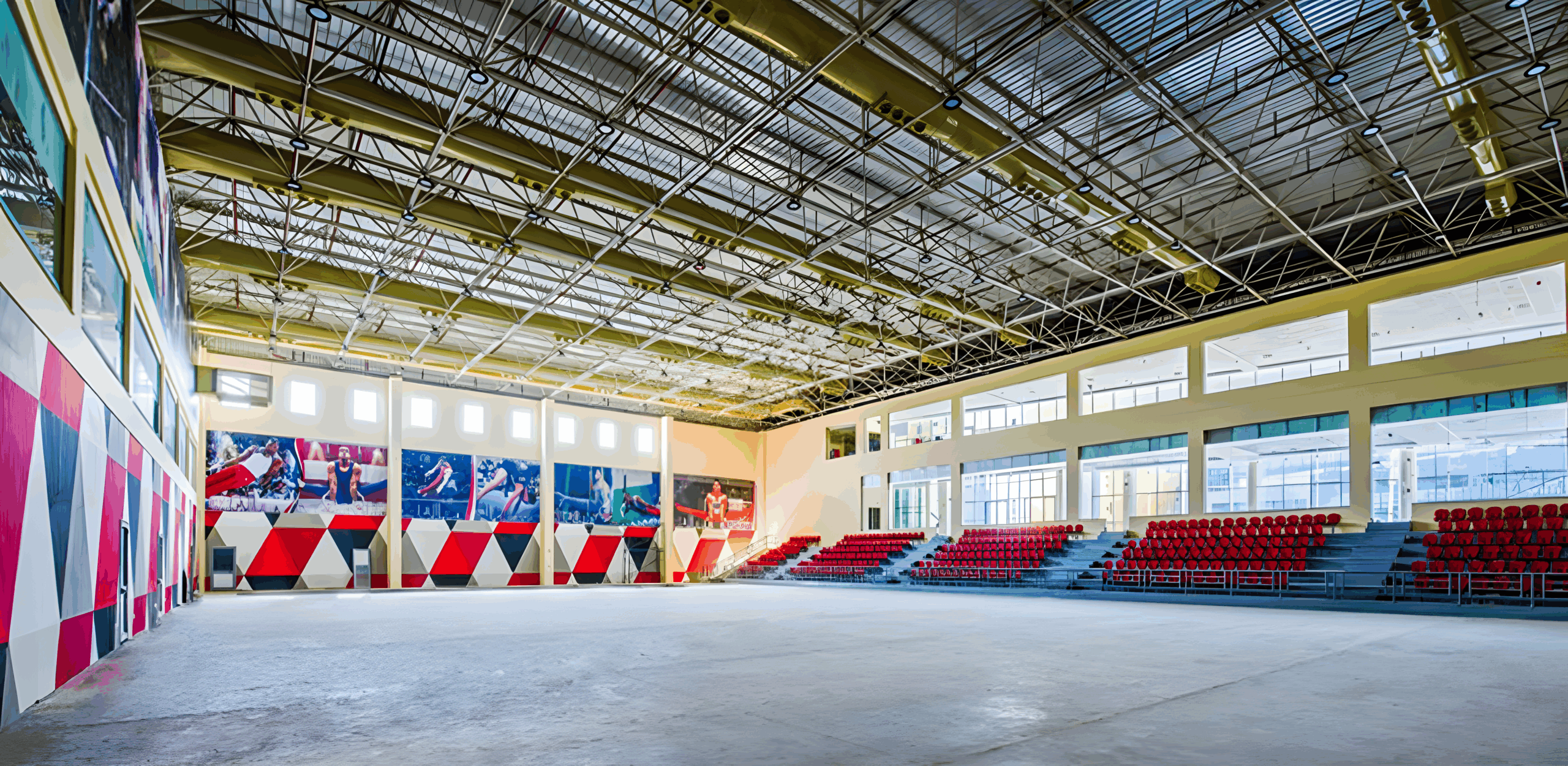 Gymnastics Hall in the New Administrative Capital covers an area of 16,000 square meters. It is equipped with modern training facilities and is dedicated to hosting training sessions, championships, and athlete development programs.